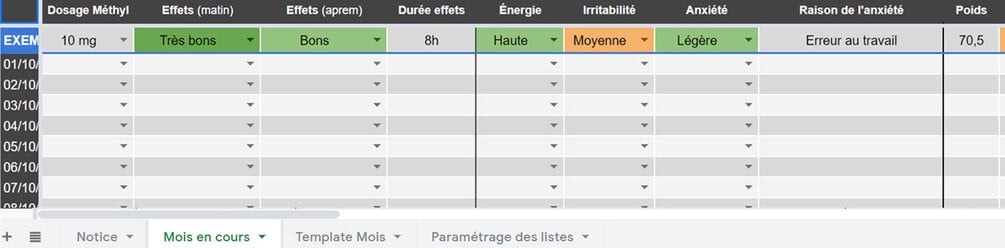 Suivi de la médication pour le TDAH (Google Sheets - Version légère)